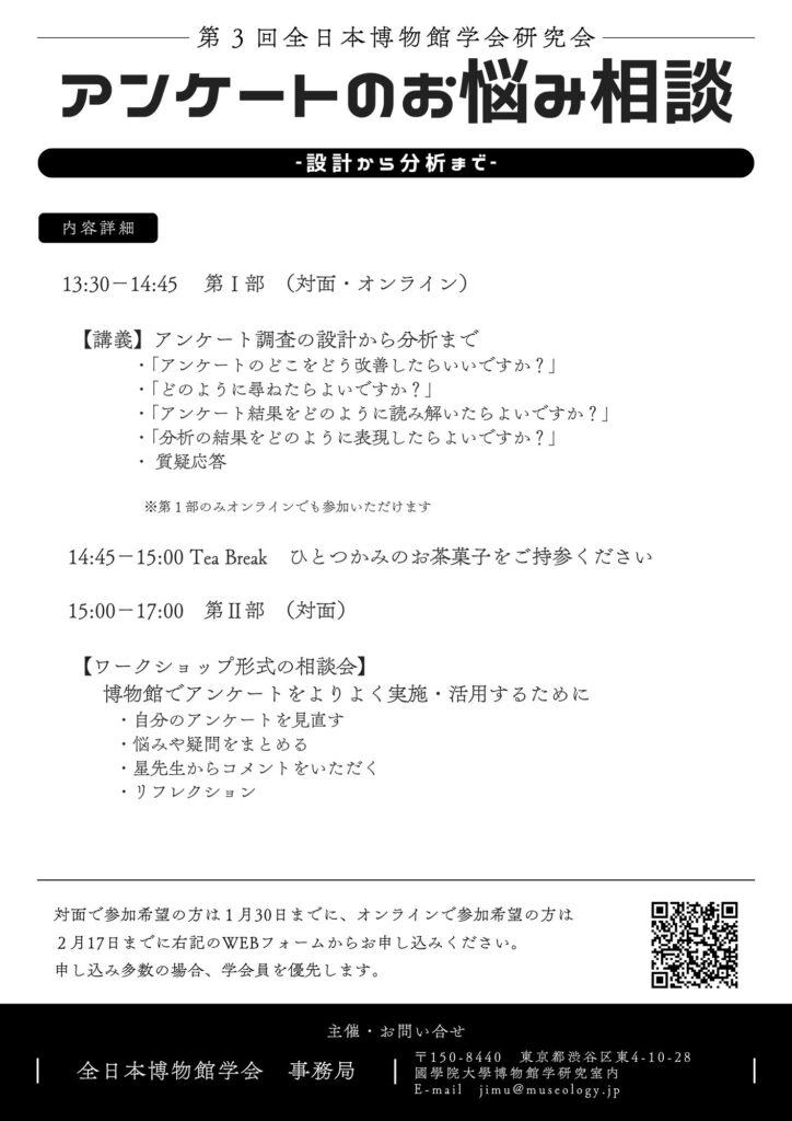 全日本博物館学会 2025年度第3回研究会「アンケートのお悩み相談〜設計から分析まで〜」