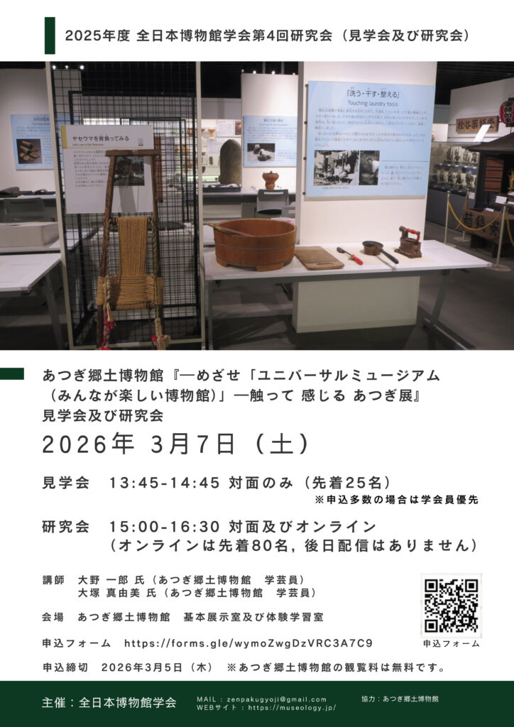 全日本博物館学会 2025年度第4回研究会のご案内