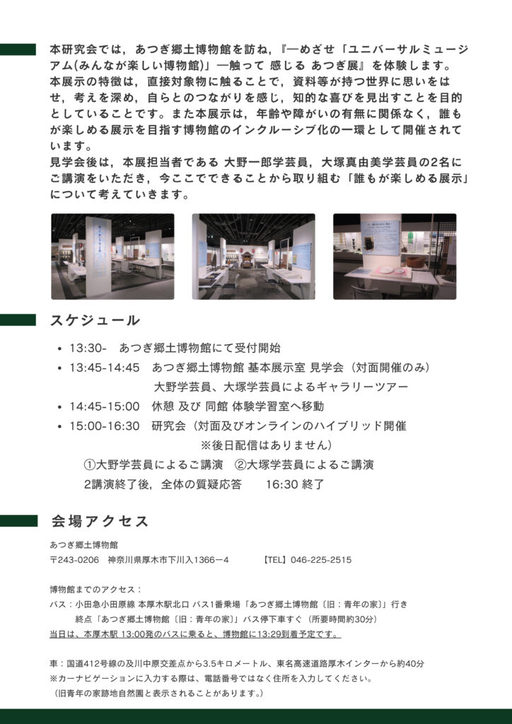 全日本博物館学会 2025年度第4回研究会「あつぎ郷土博物館『―めざせ「ユニバーサルミュージアム(みんなが楽しい博物館)」―触って 感じる あつぎ展』見学会及び研究会」